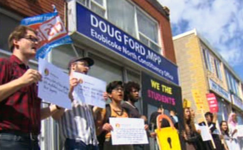 تعلیمی بجٹ میں کٹوتی کے خلاف طلباءکا ڈ گ فورڈ کے آفس کے باہراحتجاجی مظاہرہ